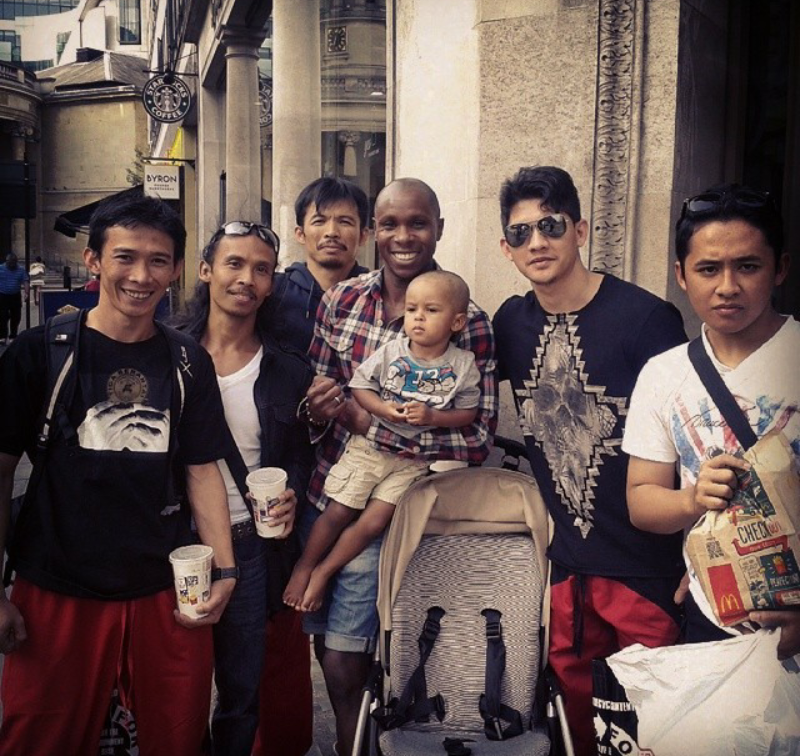 Sometimes meeting people you admire can be the worst thing you can imagine. To have the pedestal that you have placed your icon on knocked down because they are a total douche can be amazingly disappointing. On the flip side, there is no better feeling than finding out someone who you may follow or admire is just like you: a normal person trying to make their way through an average day. Before this picture was taken, I had just participated in my own “last man standing” battle with my 2 year old son to get his haircut at Champs Barbers in central London (If any of you have ever tried to get a toddler to have a haircut, then you will understand how tumultuous it is, for those who haven’t had the pleasure, you lucky sons of bitches). We were making our way back to Oxford Circus station when my spider sense started tingling, alerting me to a bunch of guys coming towards us who all happened to be dressed somewhat similar. A number of things popped into my head as to who they might be: Super villain’s here to plunder the city? (they were all dressed alike); Hare Krishnas? No they were too quiet; A ‘B Boy group? No they moved like they did something physical but not dance like; Shaolin Monks? Hmmmm maybe. And that was when it hit me like a punch from one of the 36th Chambers: THE CAST OF THE MOTHERF**CKING RAID!!! These guys are so bad ass! I just had to take a picture, otherwise I knew I would be muay thai kicking myself for the rest of my life. To cut a long story short they were the nicest of guys and were happy to answer all my questions (they were promoting “THE RAID 2“). They were also excited by Luca Sky (my son) who had the biggest stink face on, as he was still pissed off about what I had just done to his curls. We said our goodbyes and what sticks with me about the meeting is that they seemed just as genuinely excited as I was. In a nutshell they are people that make martial art films and I happen to love martial arts films, and with that one thing in common we were able to stop for 5 minutes and crack some jokes with no heirs or graces.